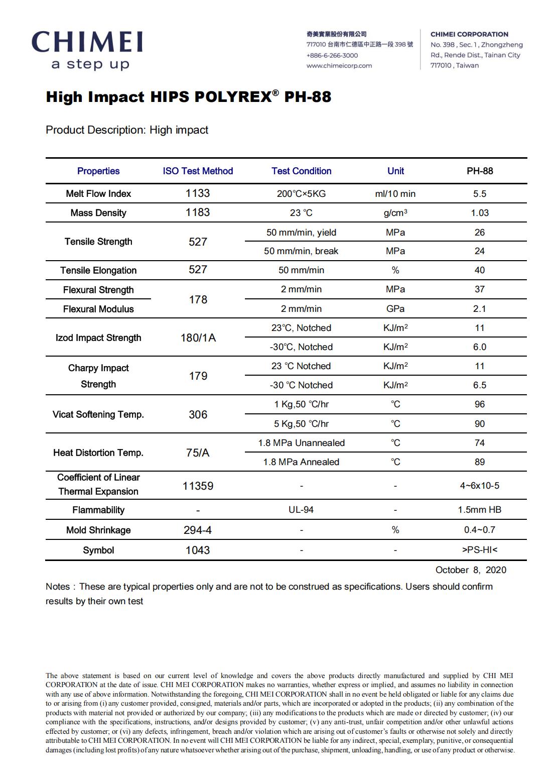 PH-88 is a High Impact Polystyrene product.