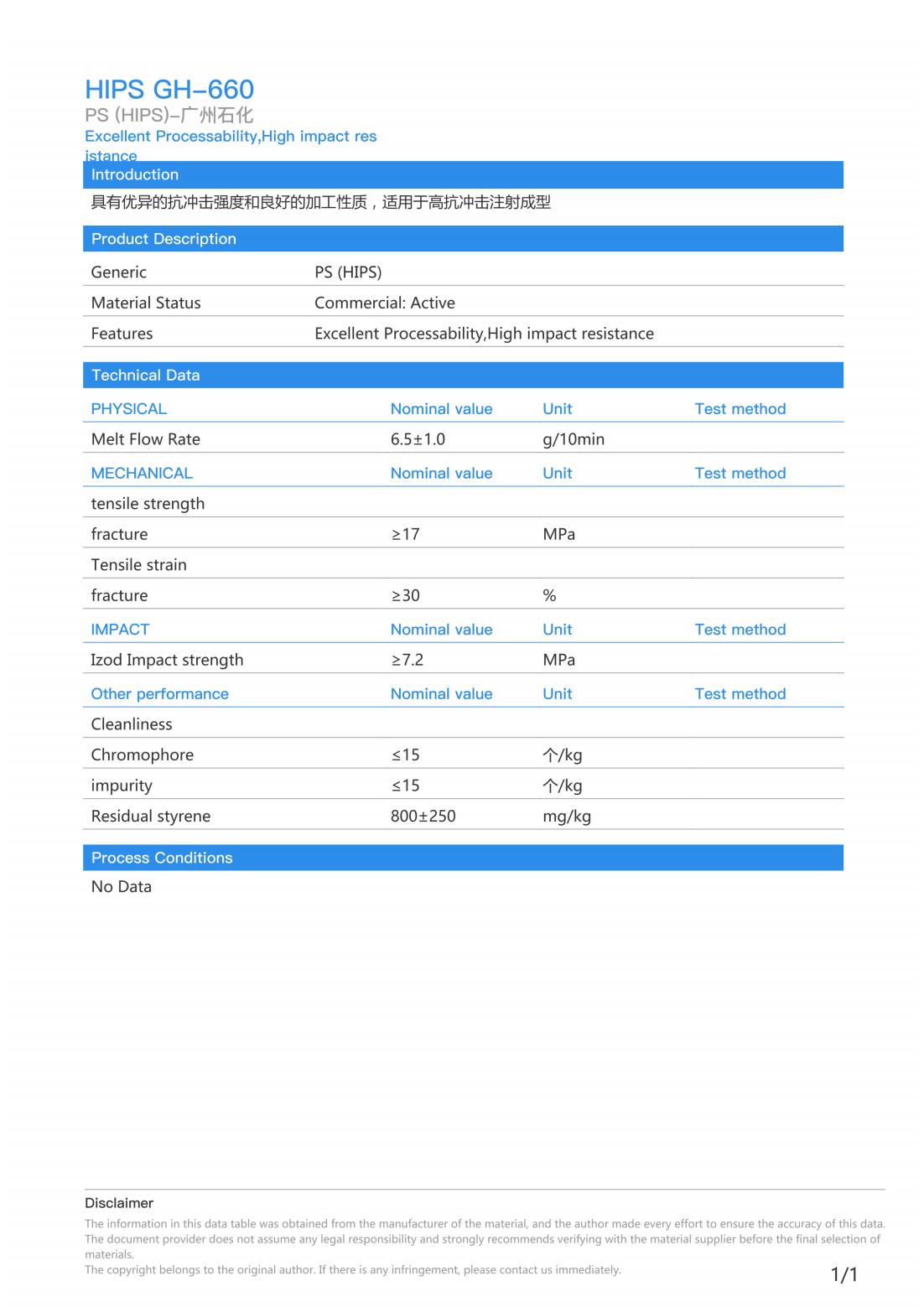SINOPEC HIPS Plastic Raw Materials Excellent Processability,High impact Resistance