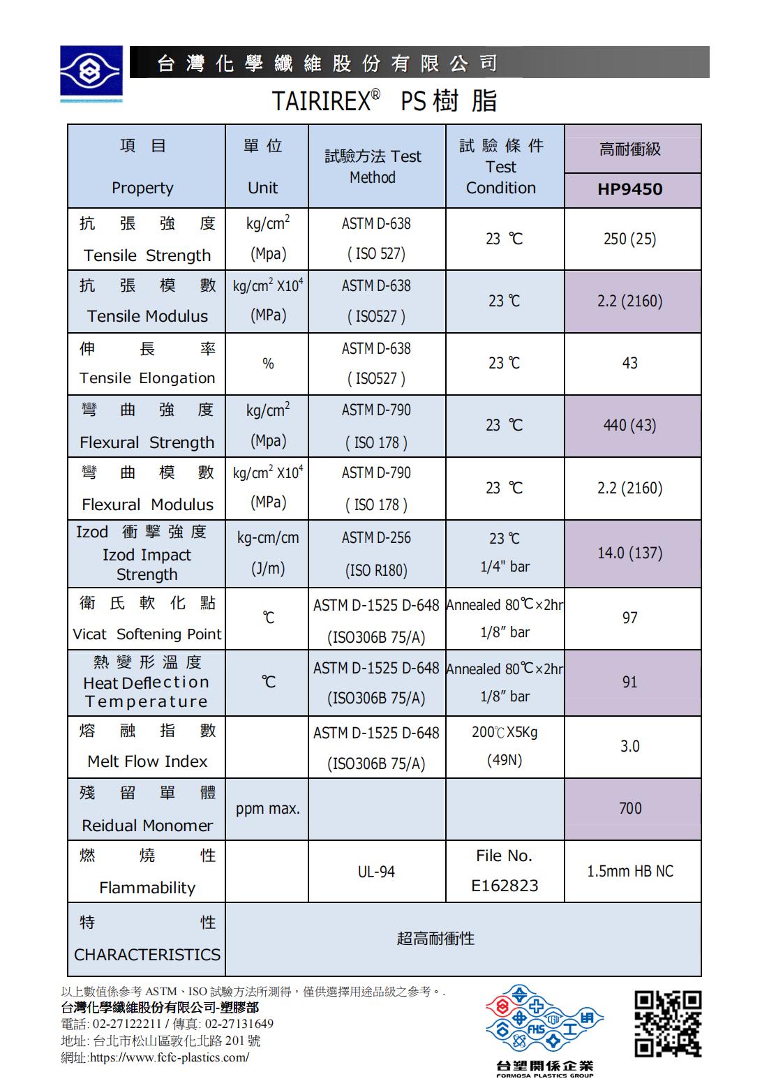 TAIWAN TAIRIREX HIPS HP9450 Plastic Raw Materials